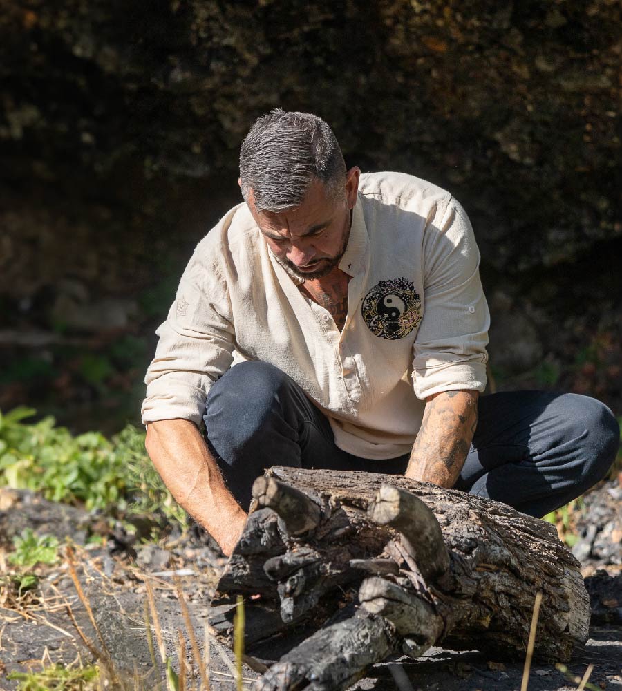 * Embroidered Yin Yang symbol on the left chest pocket – representing balance and duality